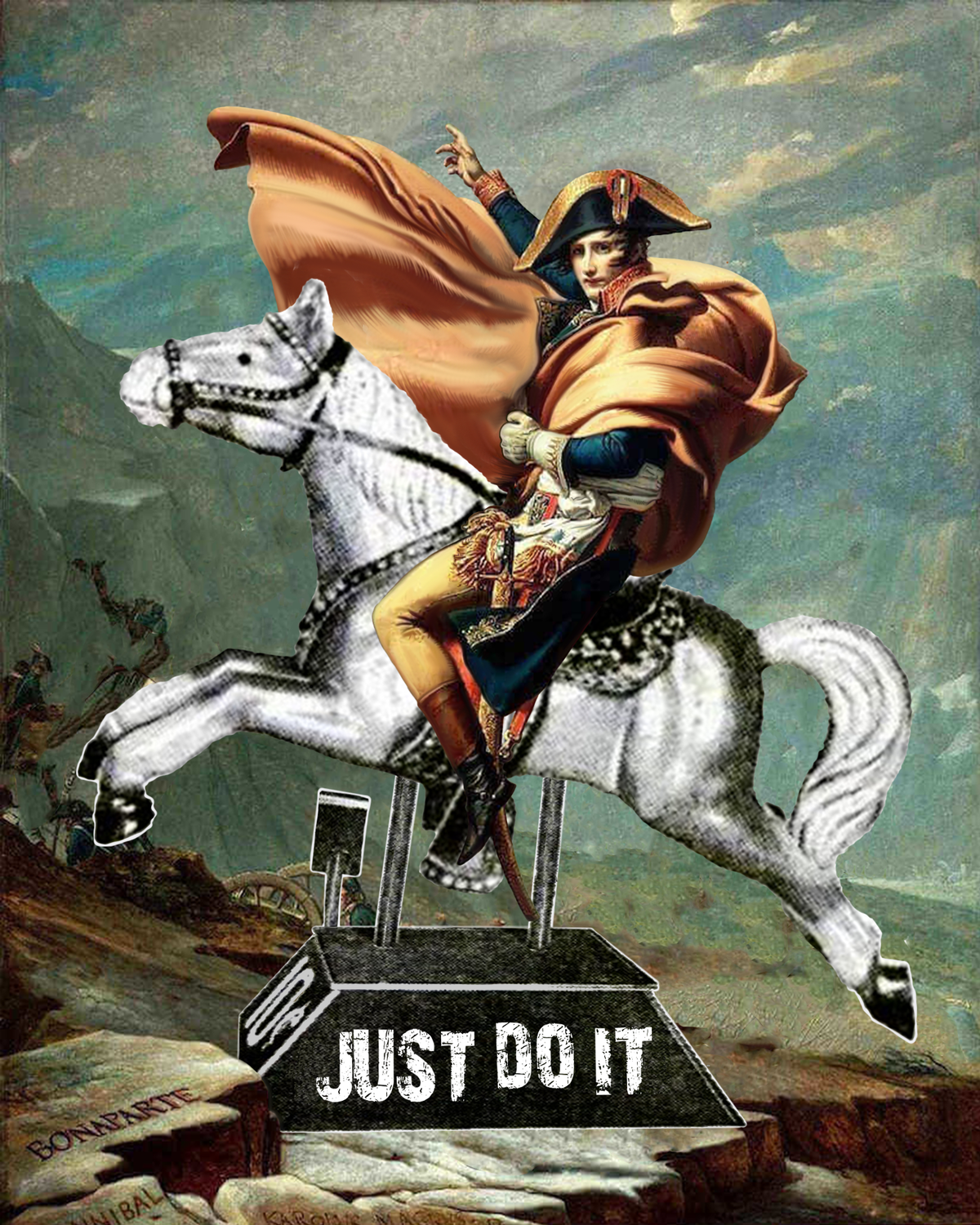 比丘尼 Di Twitter 小さいけど割りと描いてるので見て欲しい 馬は タイトルが同じ絵画の別パターンナポレオンさんから借りて来ました 画像元 ベルナール峠からアルプスを越えるボナパルト ジャック ルイ ダヴィッド パロディ オマージュ コラージュ