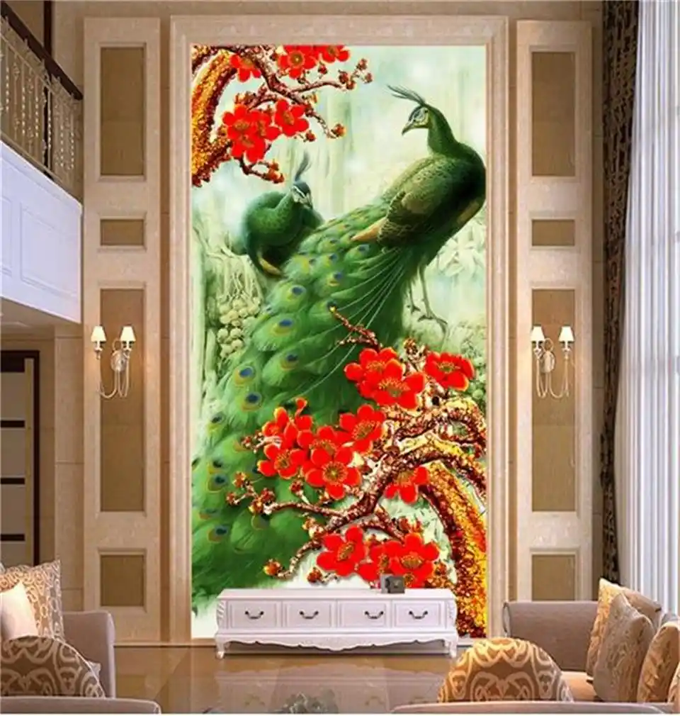 カスタム3d写真壁紙孔雀梅写真画像リビングルーム背景壁不織布壁紙用壁3d 壁紙 Aliexpress